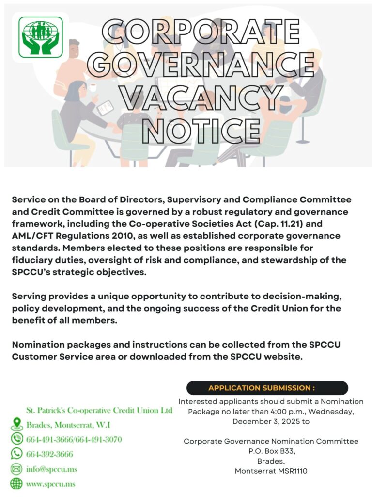 The St. Patrick’s Co-Operative Credit Union Ltd. (SPCCU) invites qualified members to submit nominations to serve on its Corporate Governance Body. Serving on the Board of Directors, Supervisory & Compliance Committee and Credit Committee offers a unique opportunity to contribute to decision-making, policy development, and the ongoing success of the Credit Union for the benefit of all members.